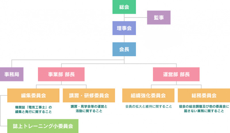 当協会は、全国の電気工事設備・工事会社様をはじめ電気工事士ならびに電気工事士を志す方々を中心に、広く電気技術・技能者のための支援団体です。